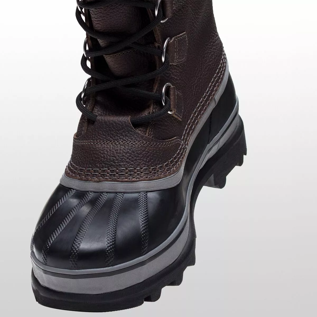 - Vulcanized rubber sole for traction on snow-covered ground