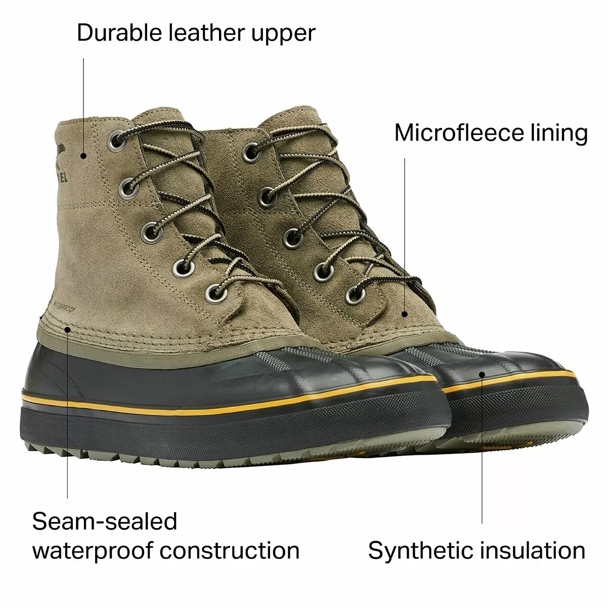 - Leather upper and rubber shell provide durability for a tough winter