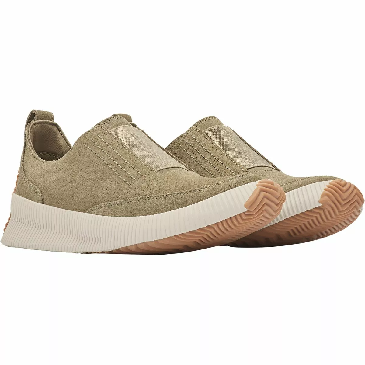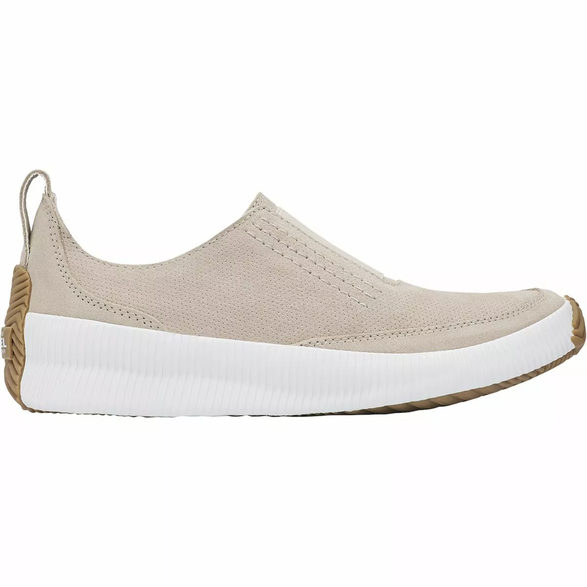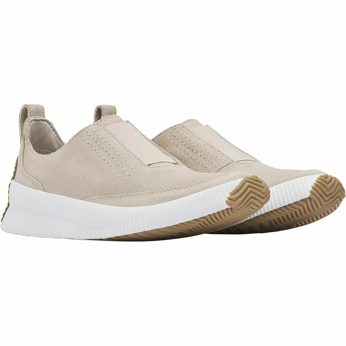 In summer rain, we ditch muggy boots and opt for the breezy Out ‘N About Plus Slip-On Shoe. Our feet stay comfortably dry wrapped in the posh waterproof suede. We stride confidently across wet surfaces with Sorel’s iconic rainy-day sole giving us reliable traction all day long.
